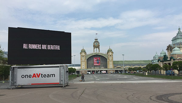 For your outdoor event, we design an LED screen setup tailored precisely to your needs — from a screen size of 5 × 3 m up to 9 × 5 m.