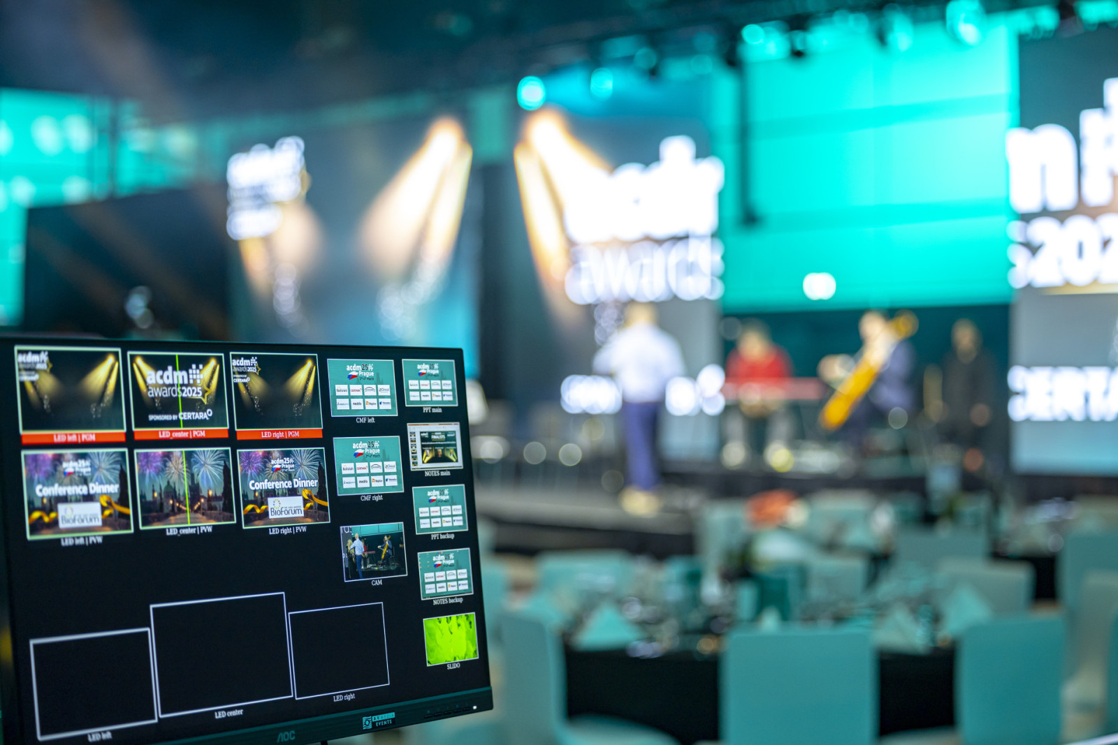 A full technical solution was delivered for this occasion. The highlight was a spectacular three-LED screen set-up, with the central screen opening to reveal the evening’s main surprise. Lighting, sound, and camera systems were also provided to ensure a seamless and professional experience.