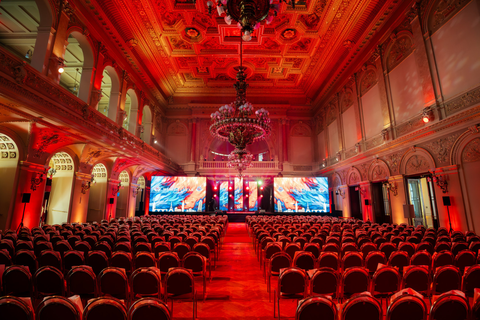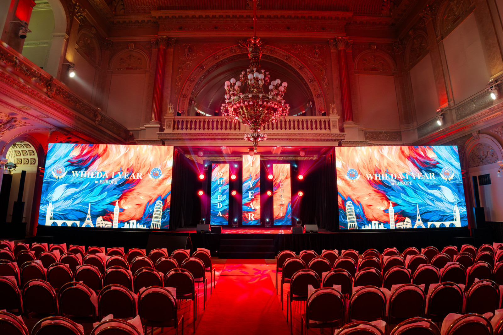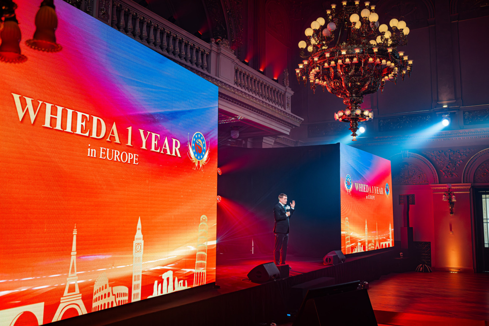 For Whieda’s event celebrating its first year on the European market, an elegant set-up was delivered at Palác Žofín in Prague.