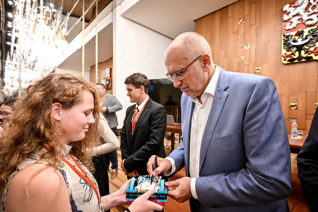Žáci, kteří v letošním roce uspěli v robotických soutěžích VEX Robotics a First LEGO League (FLL), byli 16. září slavnostně přijati v Poslanecké sněmovně ČR. Jejich úsilí ocenil ministr školství, mládeže a tělovýchovy Mikuláš Bek a poslanec Petr Liška.