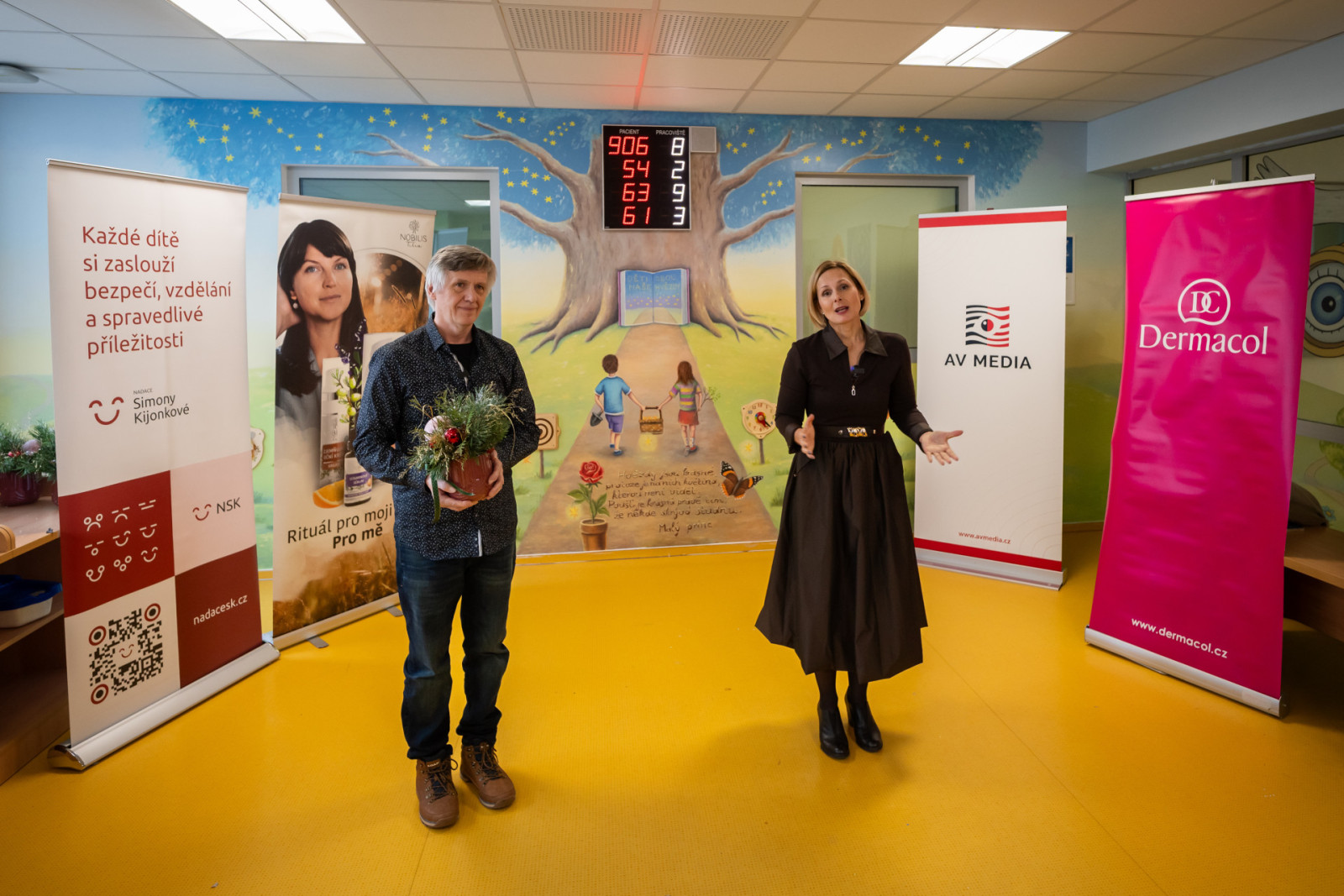 „Dlouhodobá podpora našich osvícených mecenášů, přátel a partnerů nám umožňuje vytvářet prostředí, které dětem přináší radost, klid i odvahu — emoce, které v nemocniční čekárně rozhodně nečekáte. Děkujeme zdravotníkům za odbornou spolupráci na jednotlivých tématech, byla to krásná společná práce,“ říká zakladatelka NFZZ Zdeňka Žádníková a dvorní výtvarník Libor Škrlík.