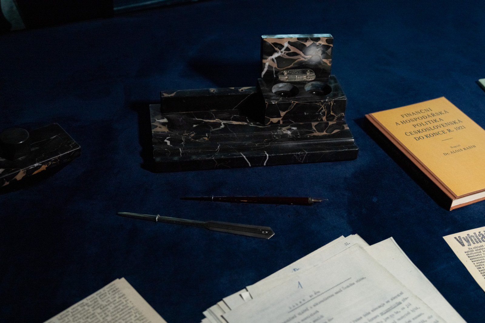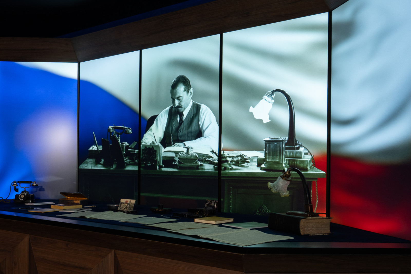 Hlavní scéna vznikla ve stylizované pracovně. Komentář autora Ivo Plasse, atelier PLASS: „Představil jsem si návštěvníka, který vstoupí do místnosti a přenese se do doby, kdy v pracovně za stolem seděl sám Alois Rašín. Chtěl jsem, aby měl pocit, že může slyšet jeho hlas, číst jeho články a vstoupit do jeho myšlenkového světa.“