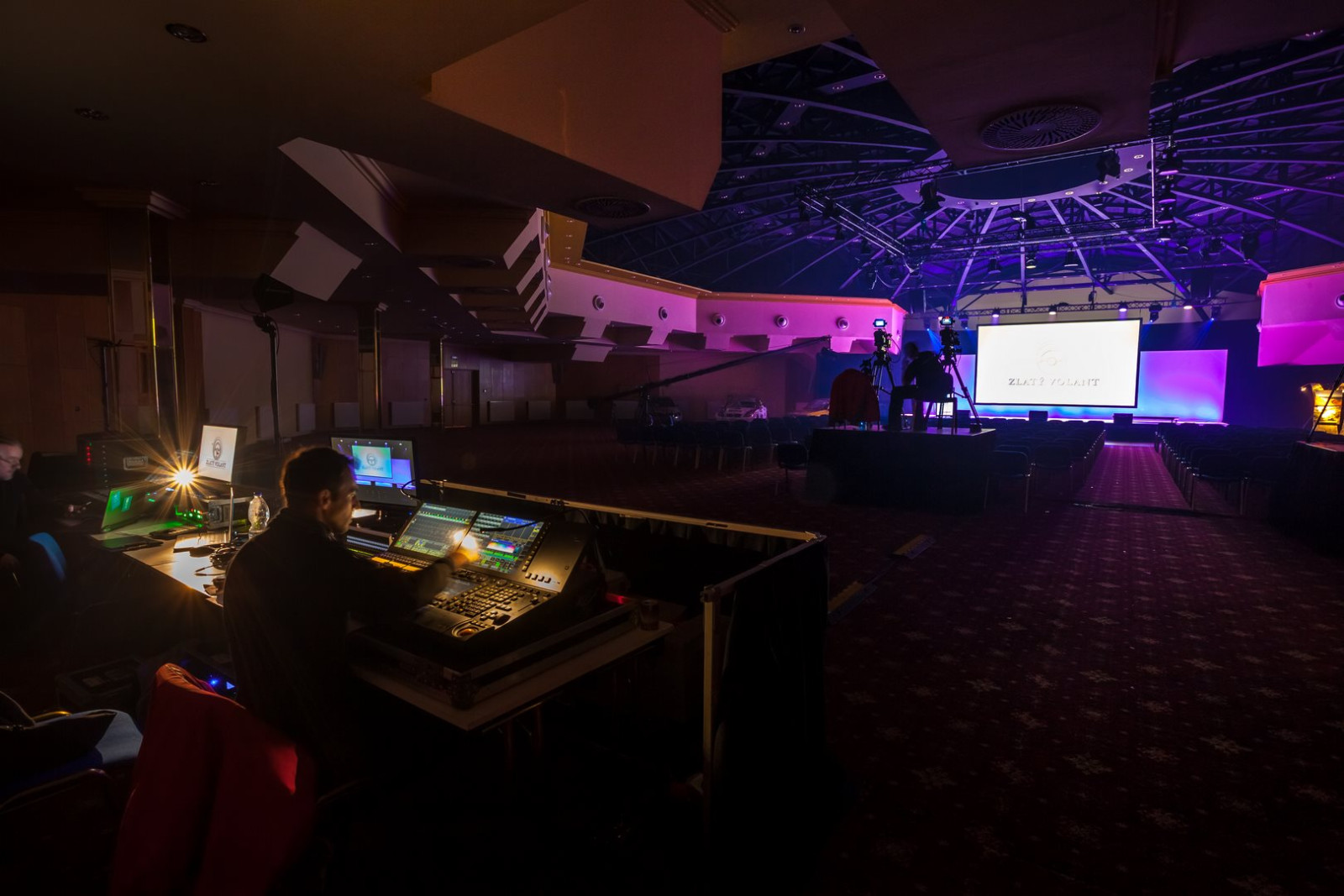 The organizing agency chose TOP Hotel Prague for the third consecutive year. The high ceilings give the conference hall endless possibilities for conceiving the scene. This year we chose the clean and simple lines of freestanding walls - a backdrop - with a central projection. The stage was decorated in white, with the backdrop serving as a surface for the atmospheric lighting. We used a powerful rear projection Panasonic projector with a brightness of 21,000 ANSI lumens. The corresponding sound and a light park of Robe lighting created the magic of the results, for which we do not have to be ashamed of nor for the participation of the cameras of CT Sport. The evening shone with two dance performances by the Crash dance group, which excited each and every man present.