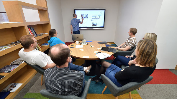 How to achieve this? Give co-workers the space for experimenting and support their success. It is true that we discover interesting original ideas during our experimental conditions and unexpected steps. In our newly designed workplaces, we use interactive SMART displays that positively influence team collaboration, the creative process, and active engagement between presenting and other meeting attendees.