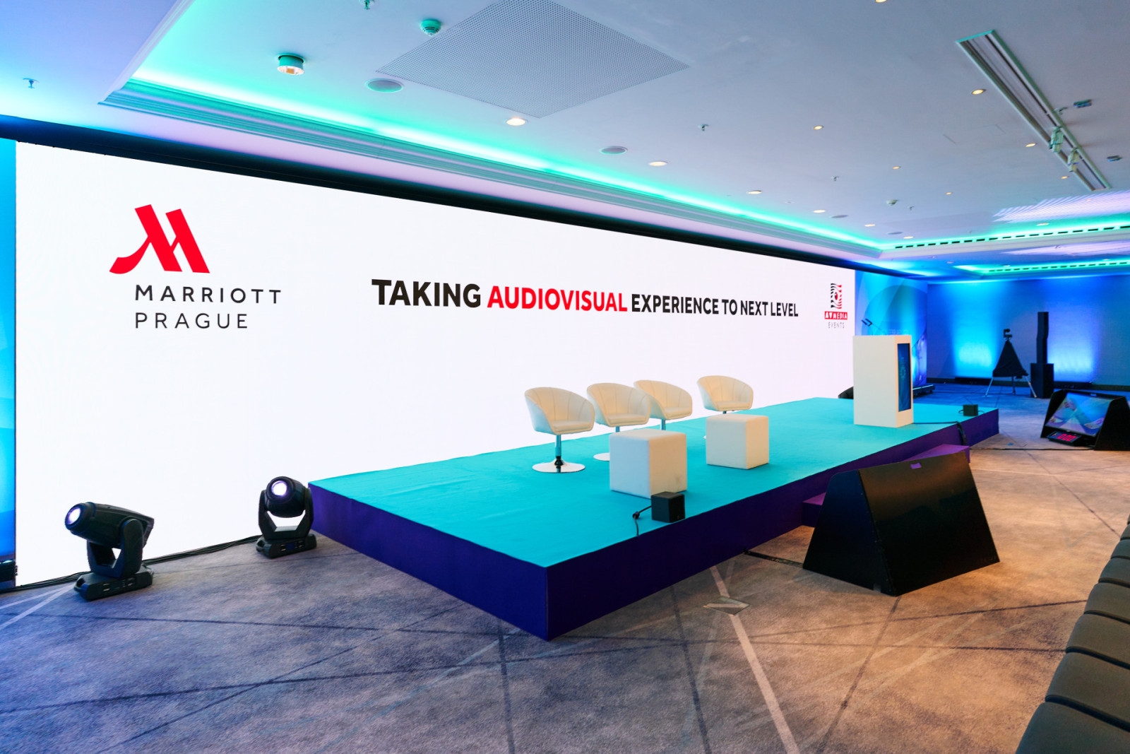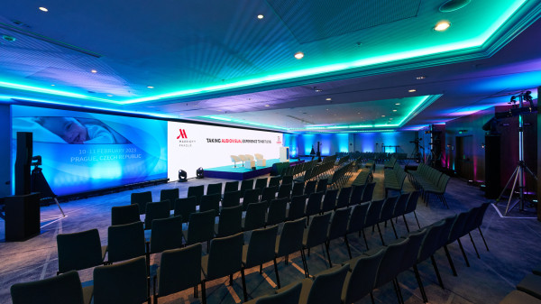 Odpověď? LED stěna s menší roztečí pixelů, která kombinuje vizuálně poutavé pozadí pro online přenos, působivý displej pro jasný a zářivý obsah i velkou plochu pro vzdálené řečníky. Pokud hledáte nejlepší možný hotel, kde lze LED stěny perfektně použít v různých variantách, nově zrekonstruované sály Bohemia 1-3 Prague Marriott Hotelu jsou tím pravým místem.