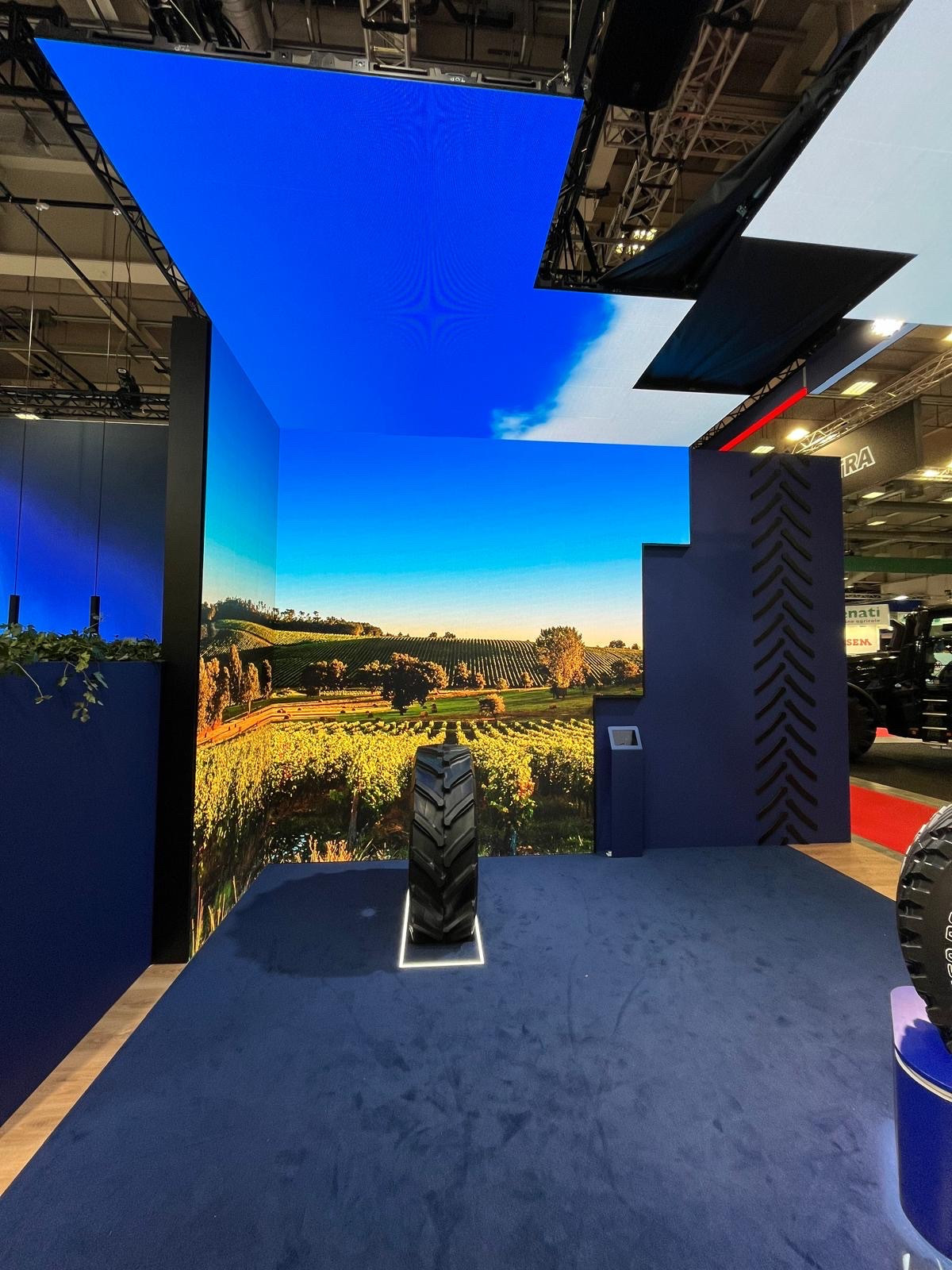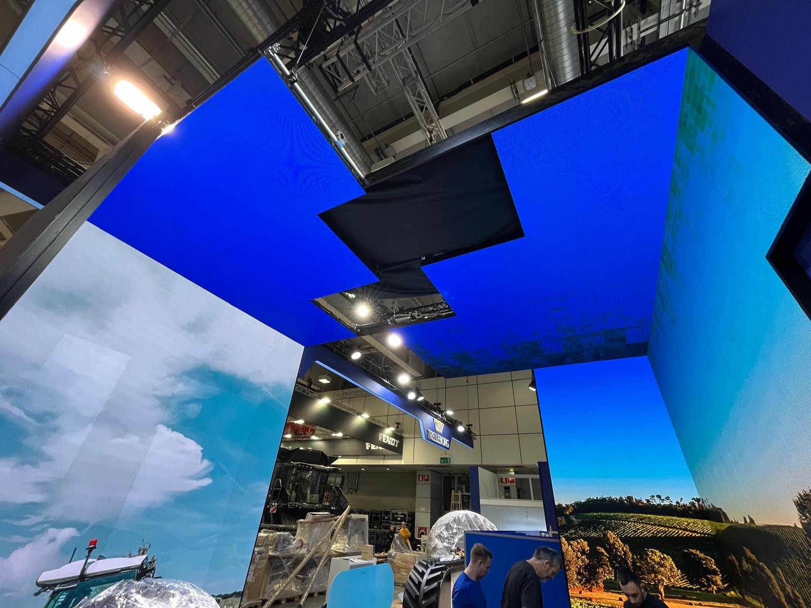 Dominantním prvkem stánku byla netradiční práce s LED technologiemi. LED panely byly využity nejen jako stropní plochy, ale také jako zavěšený LED prstenec v plném vnějším rádiusu. Pro dosažení dokonale čistého kruhu byly použity speciální moduly umožňující plynulé zakřivení bez kompromisů v kvalitě obrazu.