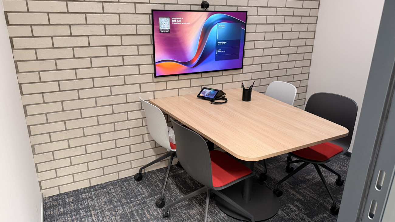 Srdcem celé realizace se stala nová konferenční místnost, navržená tak, aby nabízela maximální variabilitu a zároveň zůstala mimořádně snadná na používání. Díky řídicímu systému mohou uživatelé rychle přepínat mezi jednotlivými režimy práce podle aktuální potřeby, ať už jde o videokonferenci, prezentaci nebo bezdrátové sdílení obsahu. Ovládání probíhá prostřednictvím dotykového panelu, který umožňuje rychle a intuitivně aktivovat všechny požadované funkce, od nastavení osvětlení a pracovních scén až po rezervaci místnosti.