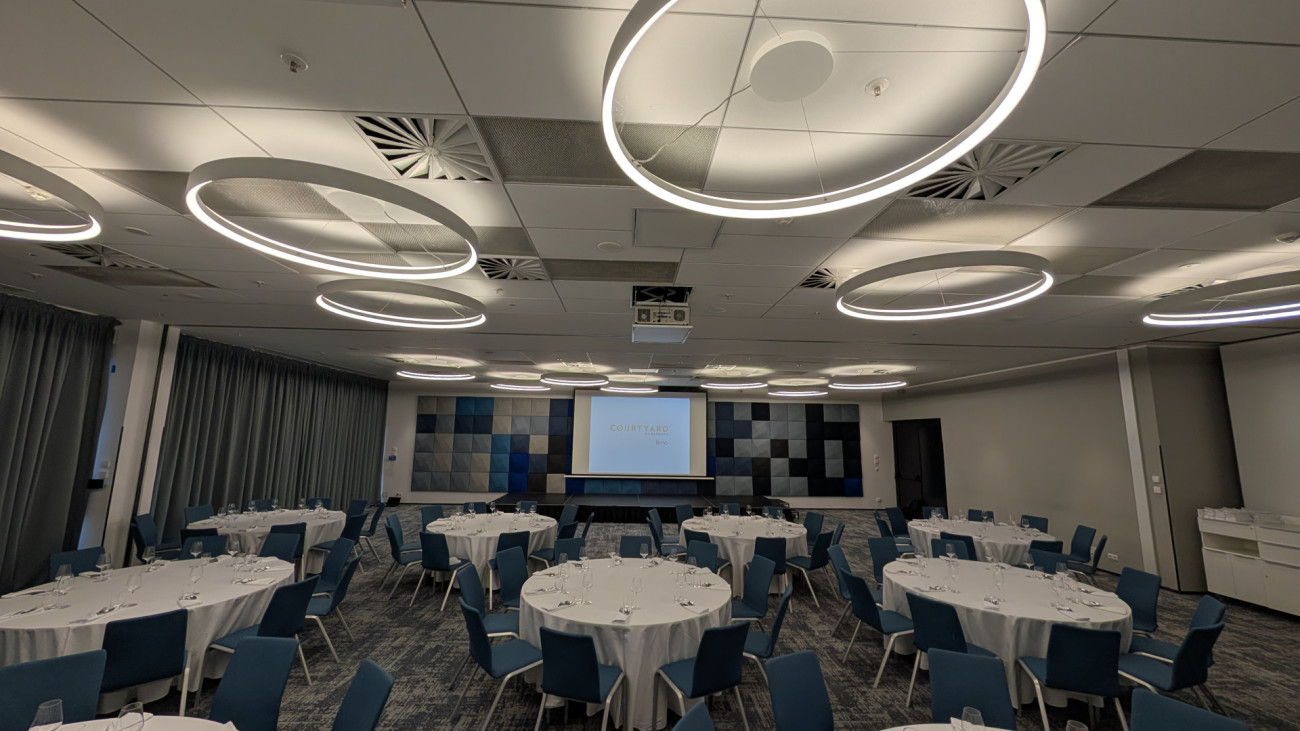 Courtyard by Marriott Brno představuje místo, kde se přirozeně propojuje svět byznysu, společenských událostí a prvotřídního hotelového komfortu. Díky modernímu prostředí, profesionálním službám a vysoké variabilitě prostor patří mezi vyhledávané destinace pro firemní setkání, konference, večírky, svatby i další společenské akce. Aby bylo možné pořádat i organizačně a technicky náročné události bez kompromisů, nestačí pouze kvalitní zázemí. Klíčovou roli sehrává také audio vizuální technologie, která dokáže jednotlivé prostory propojit, zjednodušit jejich správu a výrazně rozšířit možnosti využití.
