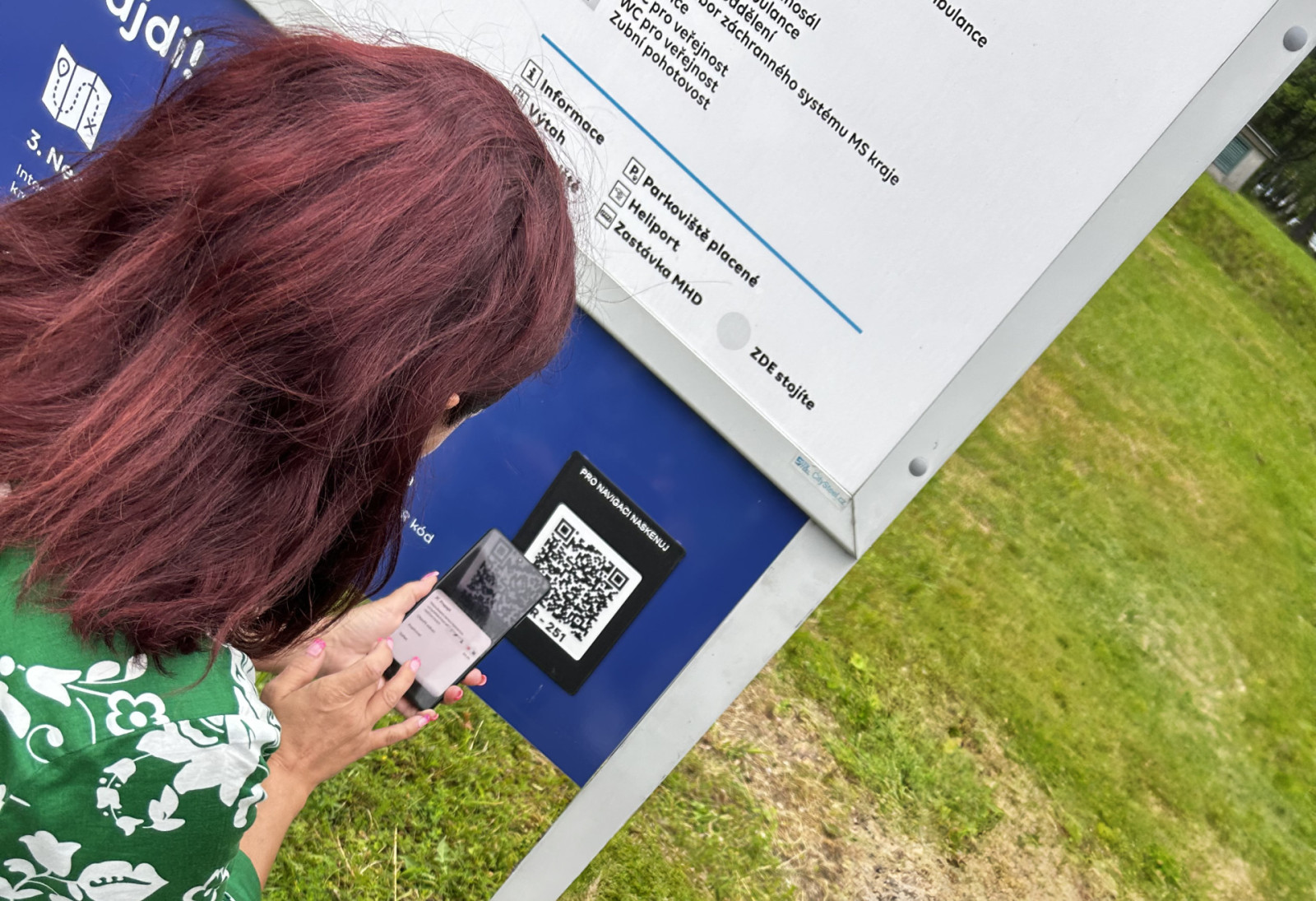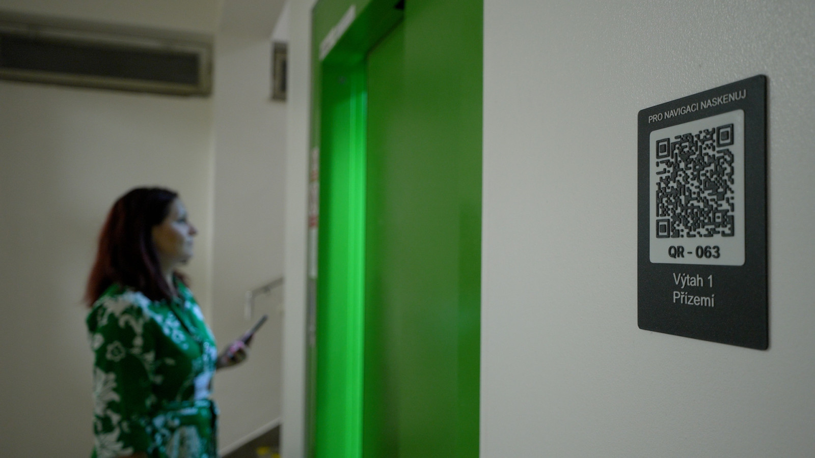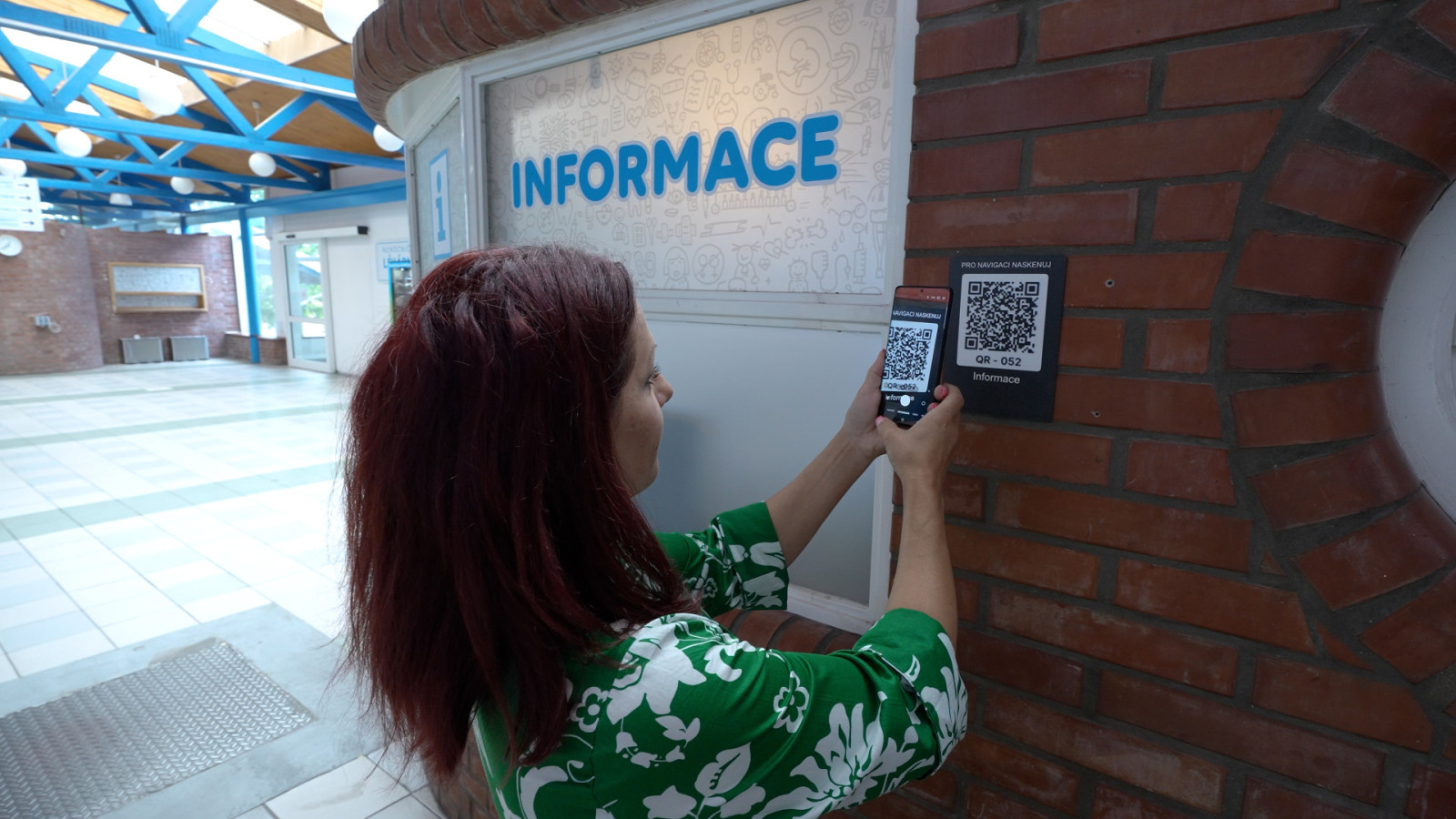 Vedle QR navigace zůstala zachována i tradiční forma orientace – informační cedule, šipky na podlaze a vstřícný personál v informačním kiosku.