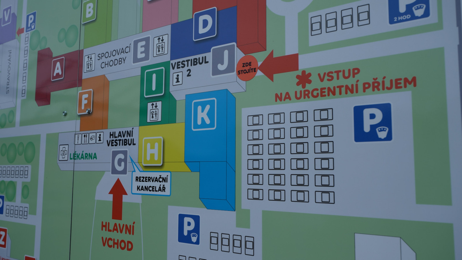 Navigační systém, který dává návštěvníkům i zaměstnancům skutečný smysl. Orientace v rozsáhlém areálu nemocnice může být náročná a nepřehledná. Areál Nemocnice Havířov, tvořený několika samostatnými budovami a sedmipodlažním monoblokem, dlouhodobě čelil obtížím s navigací pacientů a návštěvníků. Složitost prostoru často způsobovala dezorientaci, nedorozumění a zbytečné ztráty času.