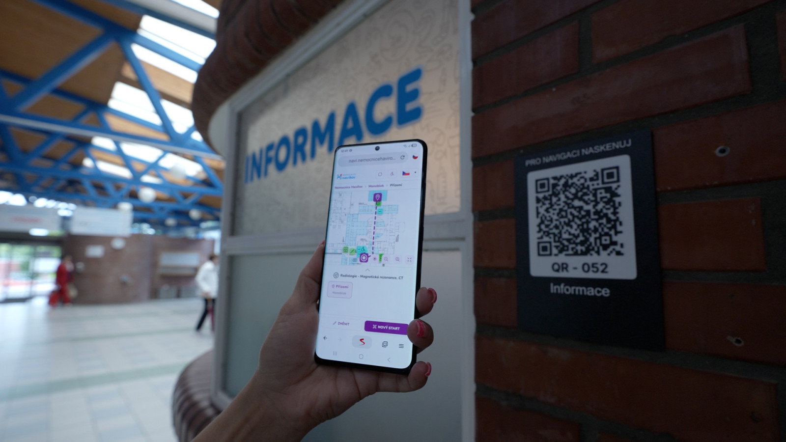 Vedení nemocnice se rozhodlo zavést intuitivní a bezbariérový navigační systém, který usnadní pohyb po areálu, sníží frustraci pacientů a zvýší provozní efektivitu – a to bez nutnosti instalace mobilní aplikace.