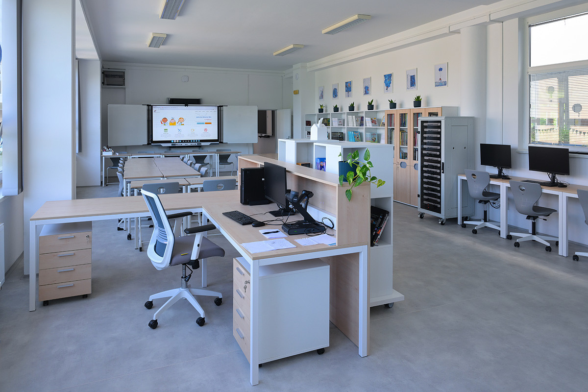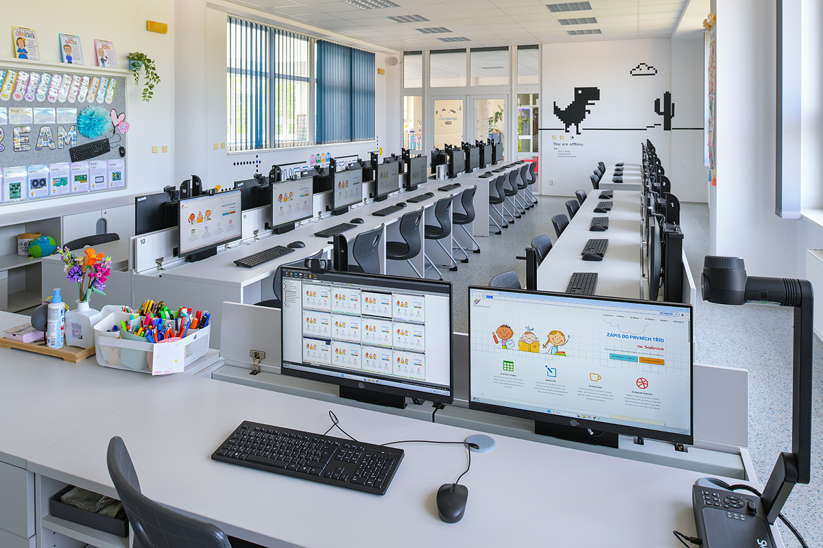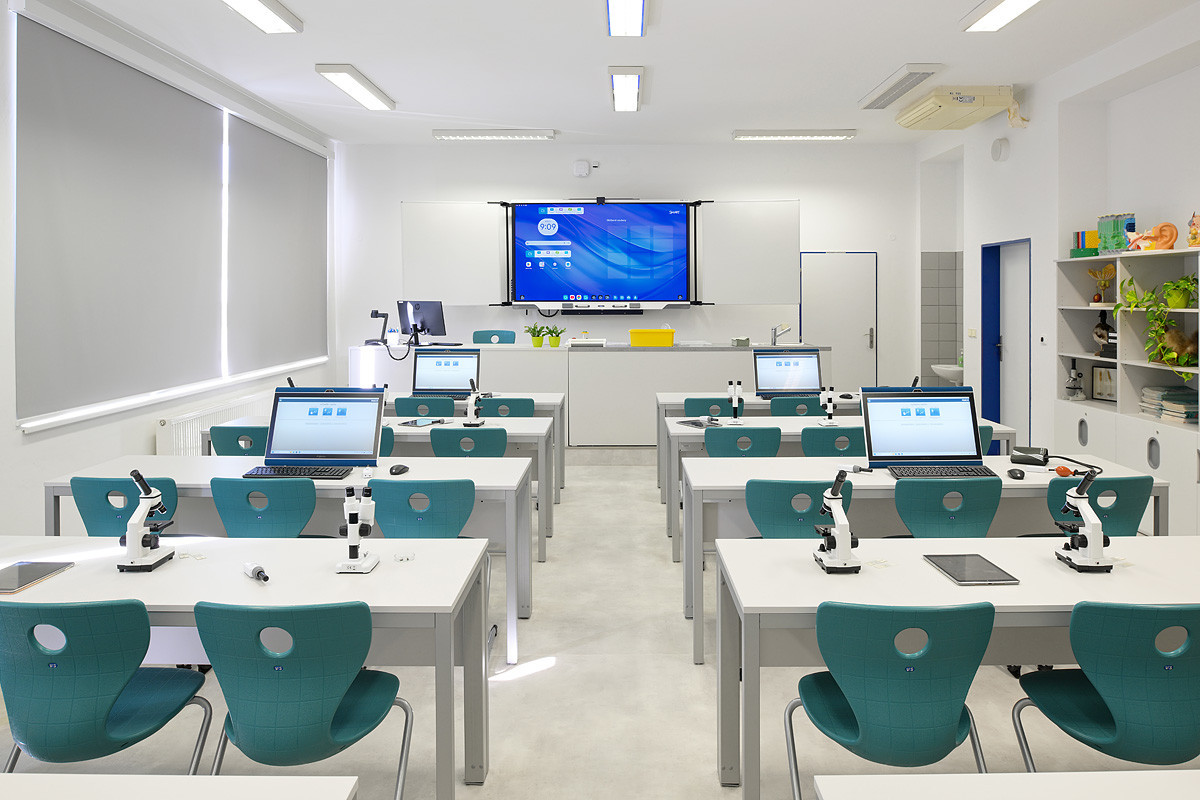 V Čáslavi se rozhodli školu zásadně modernizovat s cílem vytvořit inspirativní, funkční a technologicky vyspělé prostředí pro výuku. Každá nová učebna je dnes vybavena interaktivním panelem nebo displejem s integrovanou webkamerou, který umožňuje i případnou distanční výuku. Tato kombinace nám dává flexibilitu a připravenost na různé formy vzdělávání.